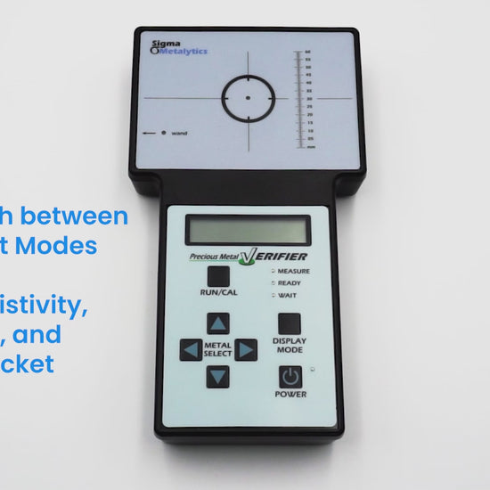 The Original PMV takes what are called “surface readings” although they are really subsurface readings that penetrate into the sample. The penetration depth of the readings vary depending on which sensor is being used and the alloy being tested. The Sigma Metalytics Original is ideal for private investors who are trading pieces around 1 ounce and smaller